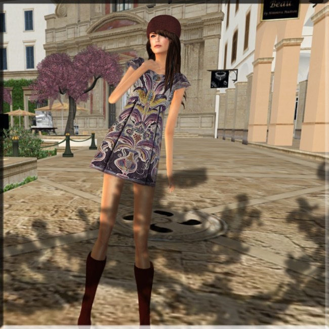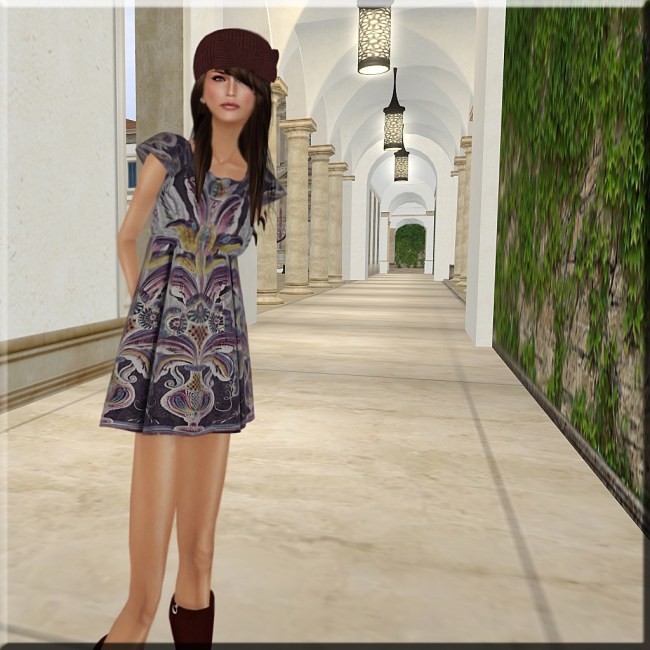 04/14/201107/17/2018 Healing – Align style card: Hair: [Me] – Alexandria new review copy Eyes: [LeLutka] – Ellis (sleet) Dress: MichaMi – Print Dress (plum) new Boots: SLink – Marina Suded (merlot) Pose: Friday (both) Location: The Renaissance Galleria