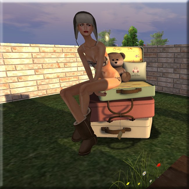 11/25/201107/17/2018 me and teddy… Style Credit: Eyes: Poetic – Moon (allure) new Hat: Elemiah Design – Chap (01A) new *review copy mesh Lingerie: Armidi – Boudoir Lingerie (blanc) warehouse sale item 100L Boots: [Armidi Gisaci] – Unisex Classic Moccas (brown) warehouse sale item 100L Pose & Prop: Cheeky Pea OMG