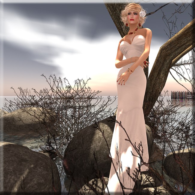 08/19/201307/17/2018 somewhere alone… style credits Hair: “”D!va“” – Layla” (Cat’s eye) new @ Collabor88 * Eyes: Amacci – Look Eyes (ice green) * Nails: Jamman – Rigged Fingernail v.5 mesh Gown: BeloD – Estrella (white) new mesh @ Fashion Limited Jewelry: Lazuri – Tres Chic (red) mesh * Pose: Diesel Works – Beth Location: Home :))