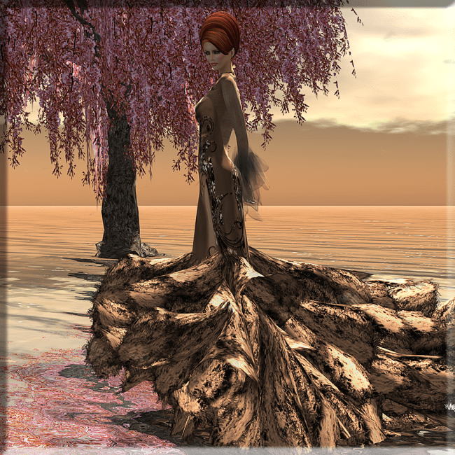 04/14/201407/17/2018 épuisé… style credit Hair: EMO-tions – * YASHI * (browns) mesh * Eyes: Amacci – Looks Eyes (ice blue) * Nails: Jamman – 9 inch Rigged Fingernails mesh * Gown: AZUL – Esmeralda [MVenezuelaV 2014/Bolivar] (topaz) new mesh Jewelry: Chop Zuey – Soul’s Horizon (old group gift) Pose: flower Tree: ::TWL:: – Weeping Sakura Tree La vie en rose