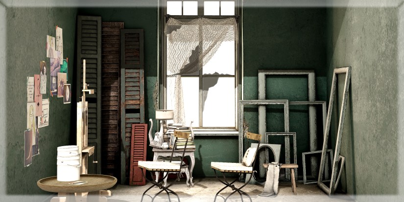 Buckets, Easel, and Stored Antiquities Piles : Nutmeg