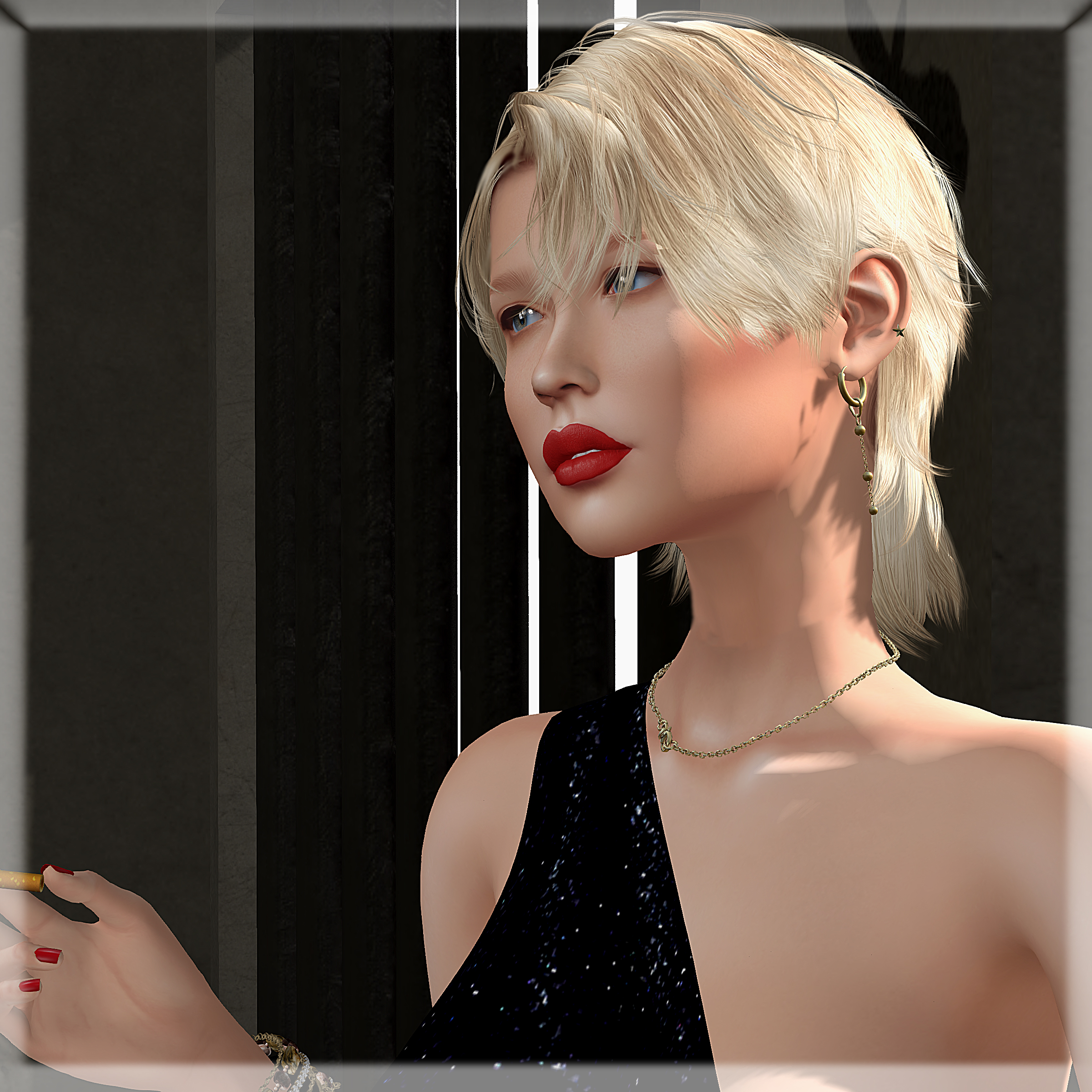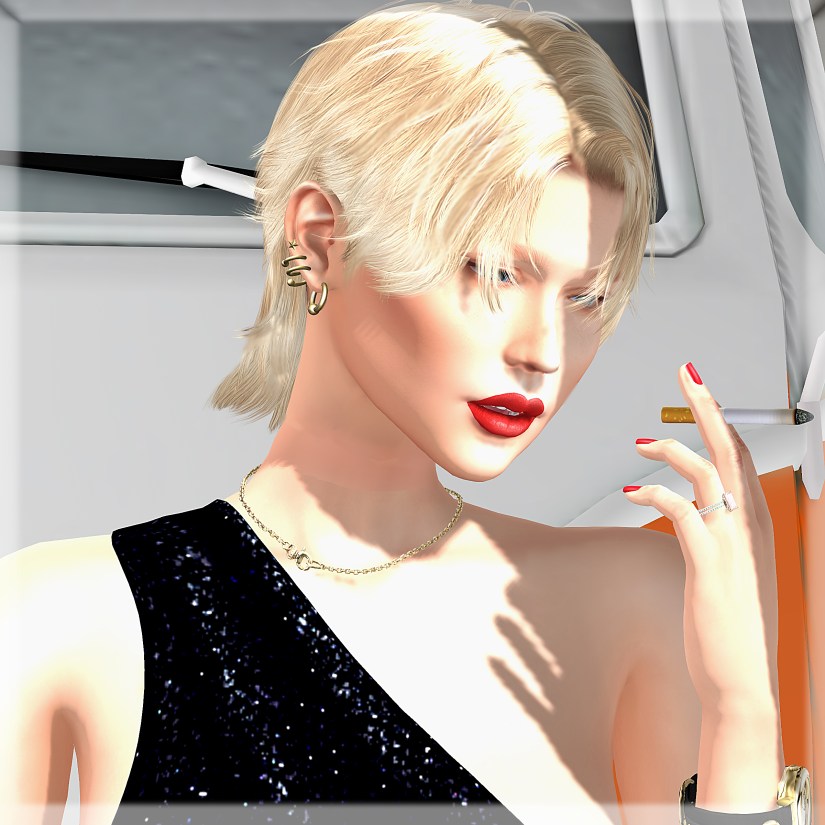 07/15/2021 hard lesson… style card Hair: Dura– B110 (hud c) @ Man Cave Eyes: AG. – Enlightened Eyes (glass) Dress: -AZUL- Adela @ [BlackFair] Earrings: Schelm – zipper motif industrial & 002- chain Hoop earrings @ Man Cave (special collaboration pierced earrings with DURA hair B110) Pose: – space cadet – nasa’s fake Backdrop: .PALETO. – Hallway XH1