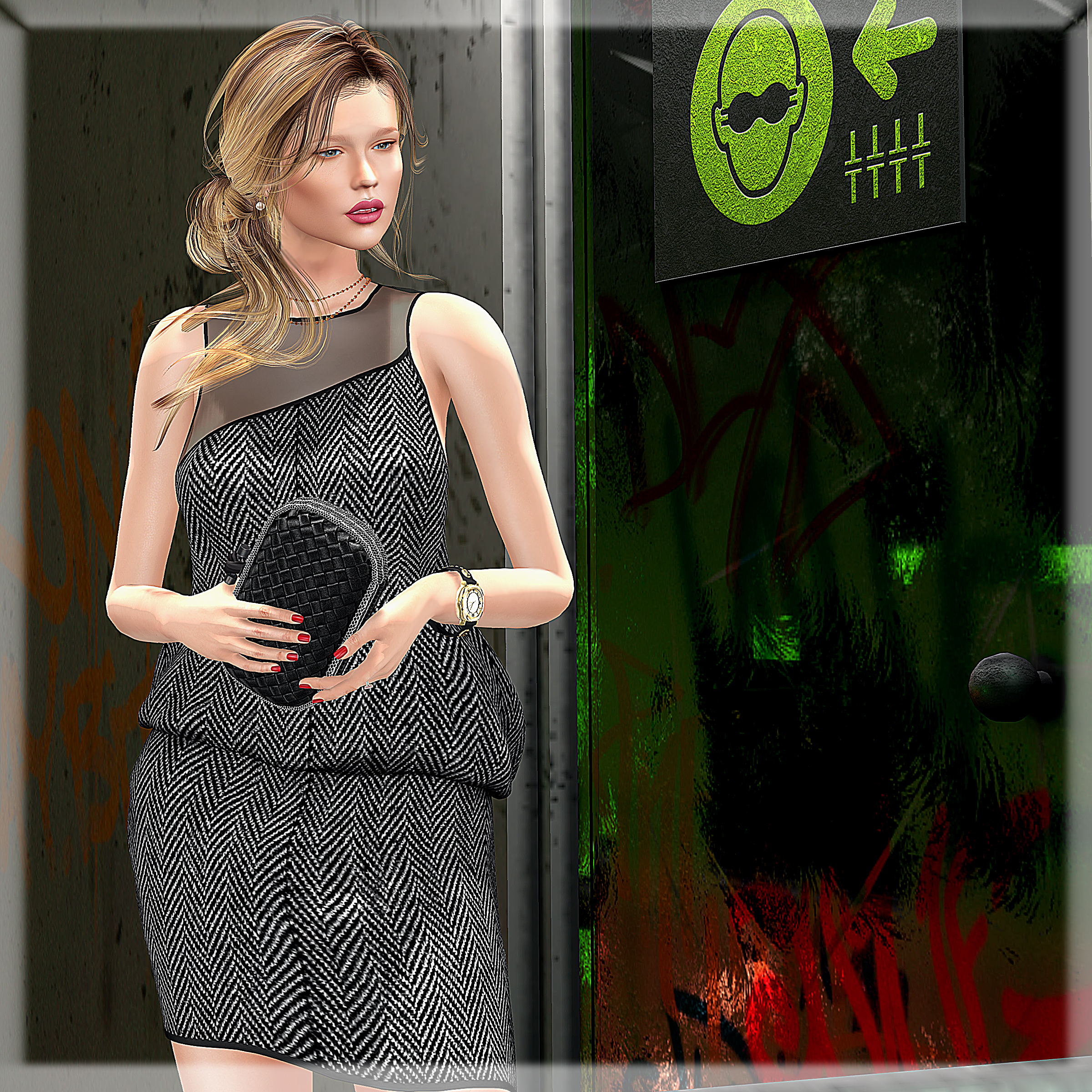 09/03/2021 status quote… style card Hair: *barberyumyum* -P15(03) Eyes: AG. – Enlightened Eyes (glass) Dress: Clef de Peau. – Tessa Dress Herringbone Shoes : Phedora – Bexley Heels Clutch: *COCO* – Satin Clutch (black) Pose: Ana Pose Backdrop: .PALETO.Backdrop:. – DON’T PANIC