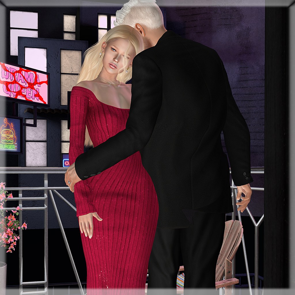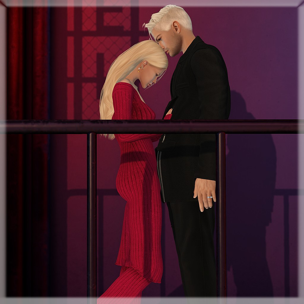 02/14/2022 always and forever… style card on Renee Hair: TRUTH – Solstice (blonde) Eyes: AG. – Enlightened Eyes (glass) Outfit: *COCO* – _Knit Midi Dress With Pants (garne red) @ FaMESHed Pose CKEY (single pose) on Brad Hair: Modulus – Michael Hair (monochromes) Outfit: ::GB:: – WZip Jacket and slim pants (line) @ Uber Pose CKEY (single pose) Couple Pose: CKEY Backdrop: .PALETO.Backdrop:. – Domus meus, Terrace, Backstreet