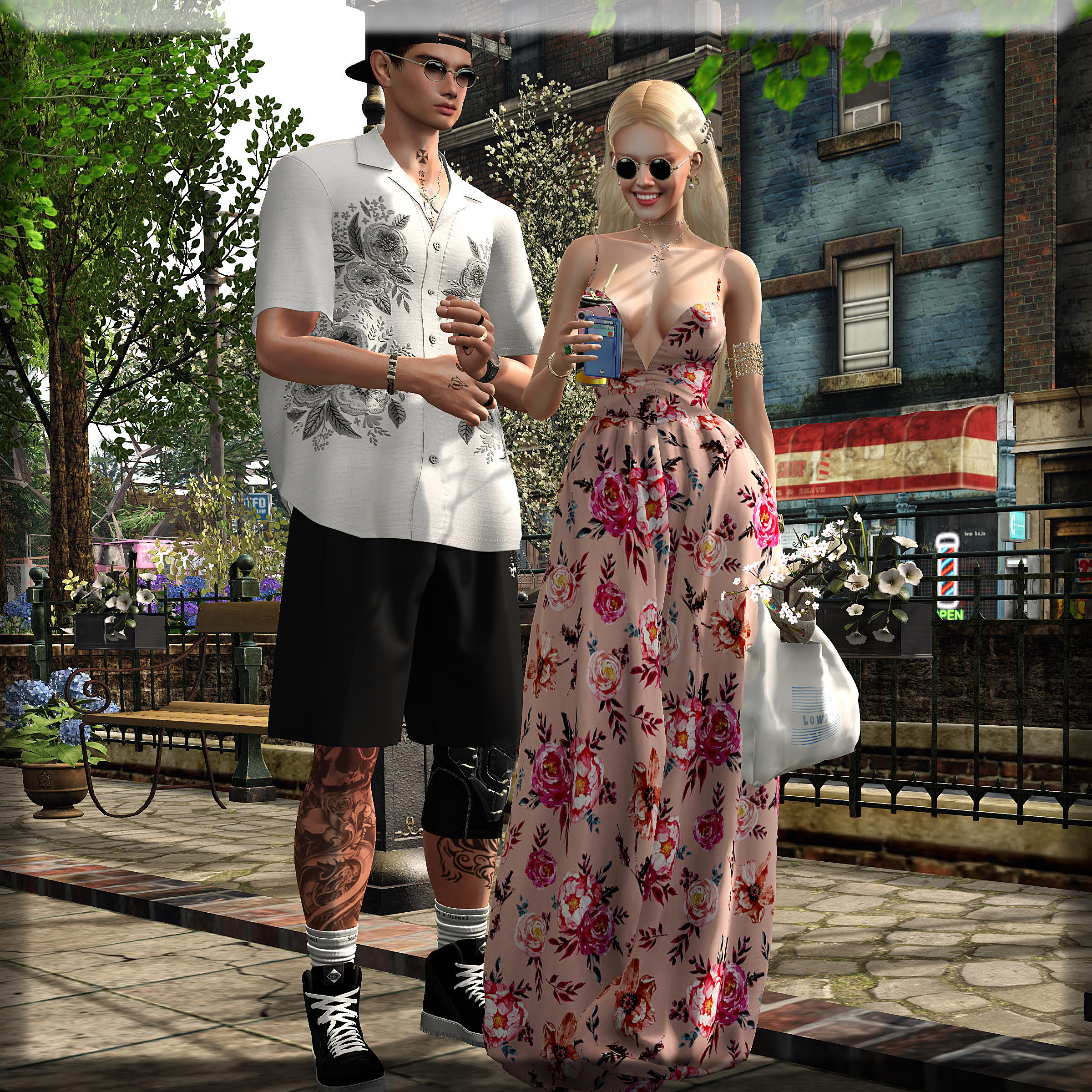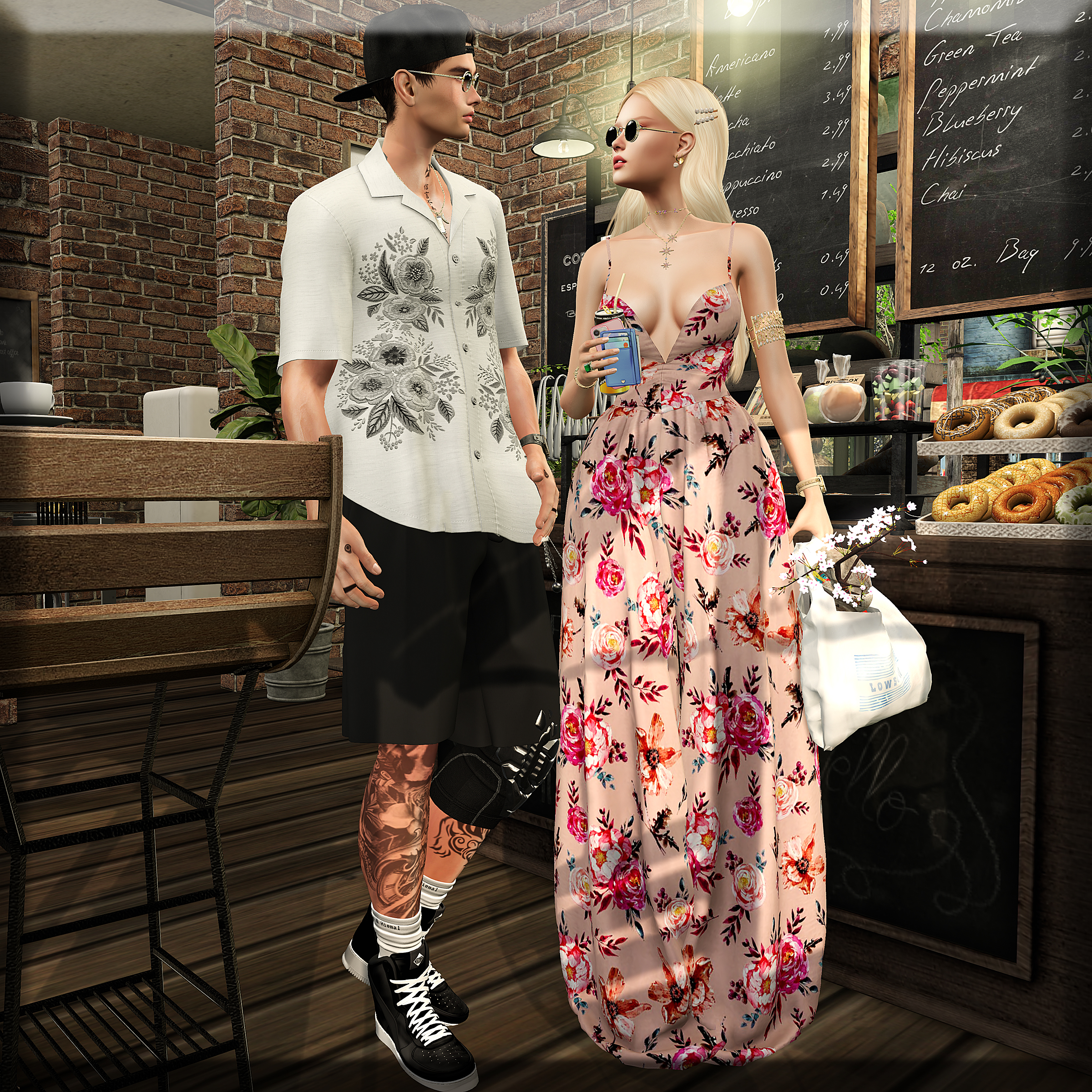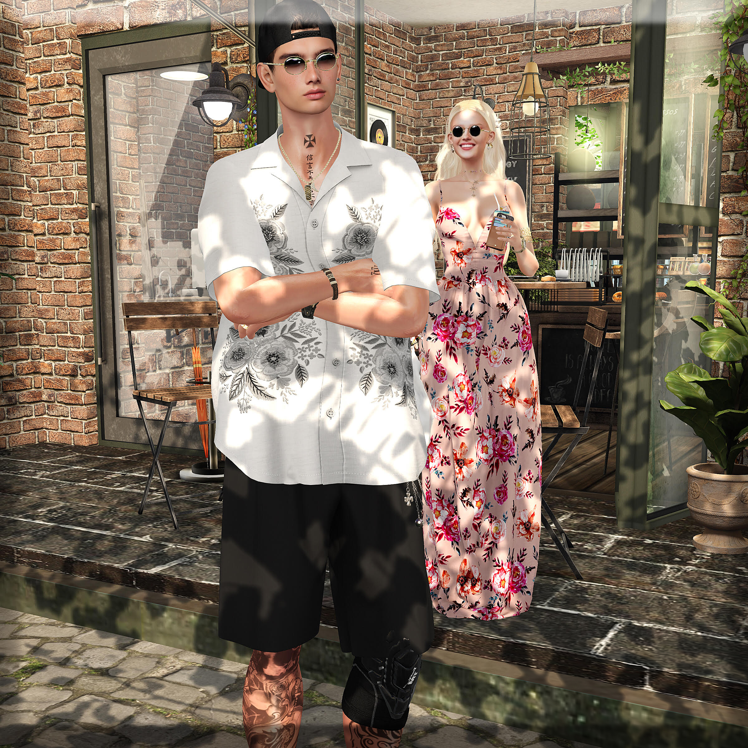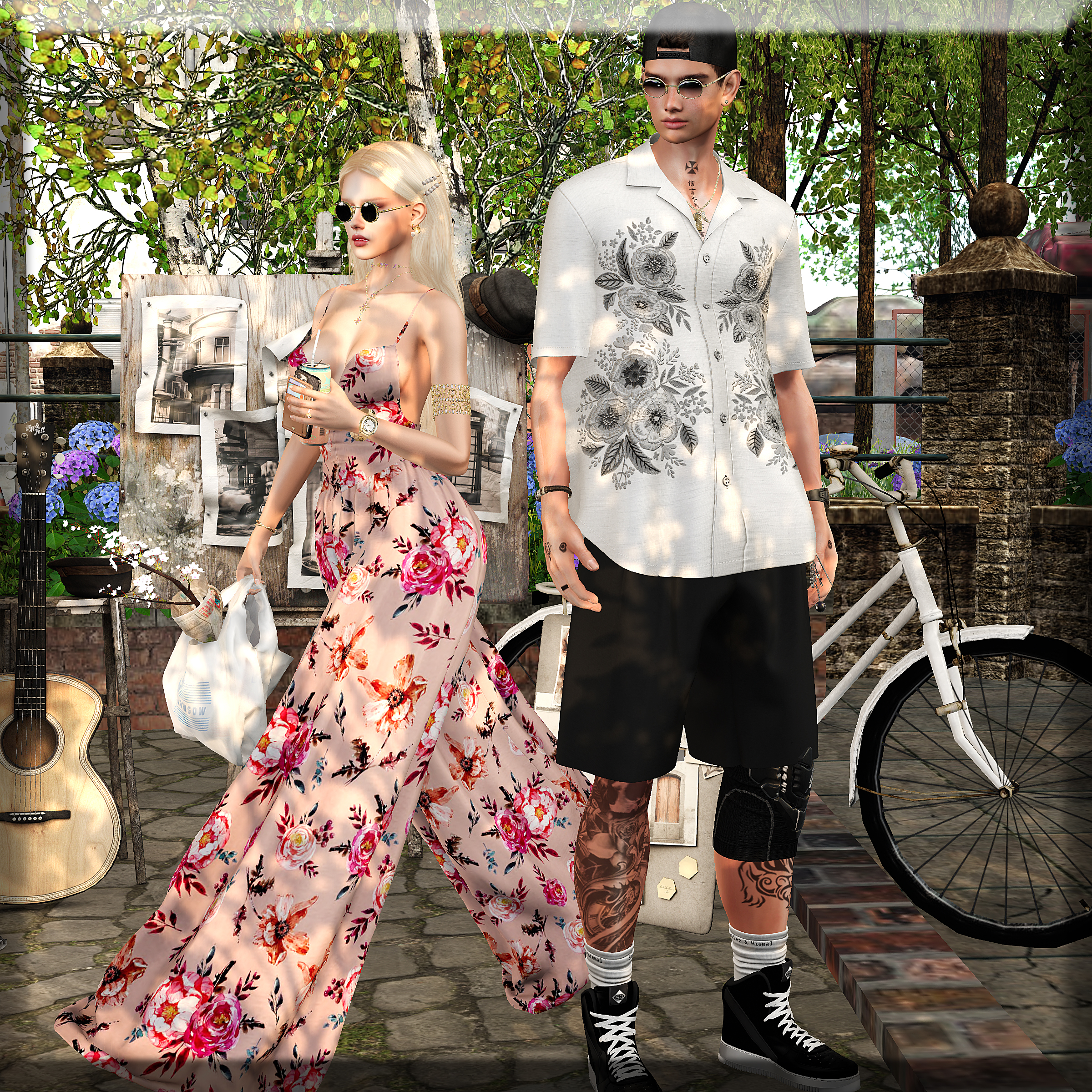 Outfit: COCO – Wide Leg Cami Jumpsuit (mixed roses) @ Fameshed